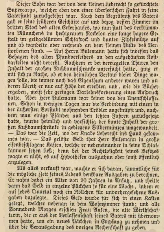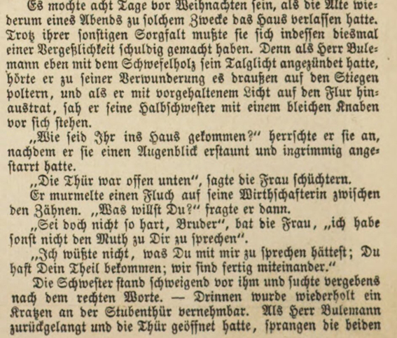 Illustrirte Zeitung. Wöchentliche Nachrichten über die Ereignisse, Zustände und Persönlichkeiten der Gegenwart, über Tagesgeschichte, öffentliches und gesellschaftliches Leben, Wissenschaft und Kunst, Musik, Theater und Mode. 43. Band, Leipzig 1864, No. 1121 vom 24. December 1864, S. 447, 450 und 454. Mit einem Holzstich „Bulemanns Haus. Originalzeichnung von Theodor Hosemann.“ auf 453. |
