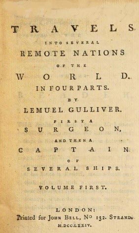 Travels into several Remote Nations of the World. In Four parts. By Lemuel Gulliver. A surgeon, and then a captain of several ships. Volume First. [Jonathan Swift.] London: 1774. |
