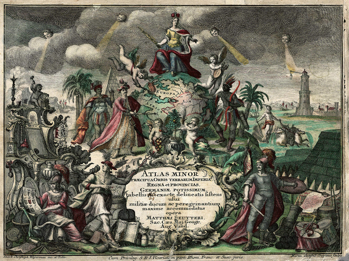 Seutter, Matthäus; Weyerman, Jacob Christoph [Ill.]; Crophius, Martin Gottfried [Ill.]: Atlas Minor: Praecipua Orbis Terrarum Imperia, Regna et Provincias, Germaniae Potissimum, tabellis 50 exacte delineatis sistens usui militiae ducum ac peregrinantium maxime accommodatus opera. Cum Privileg: S. R. I. Vicariat. in part: Rheni, Franc: et Suev: iuris Augsburg, [1745].
