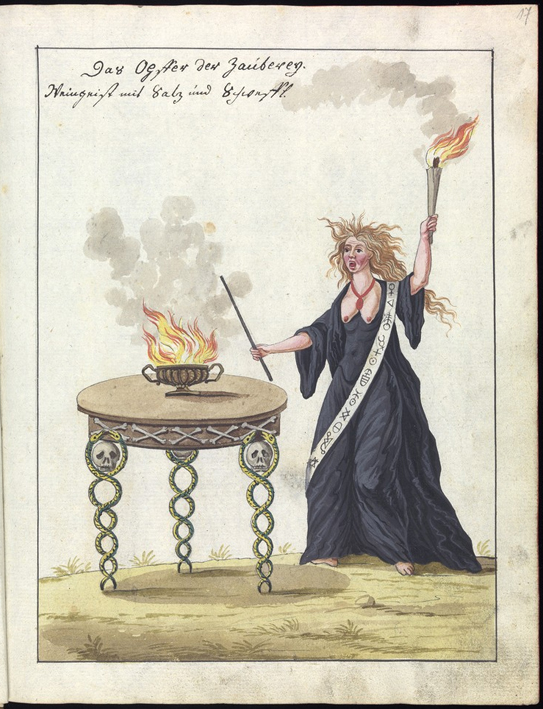 Das Opffer der Zauberey. Weingeist mit Salz und Schweffl.