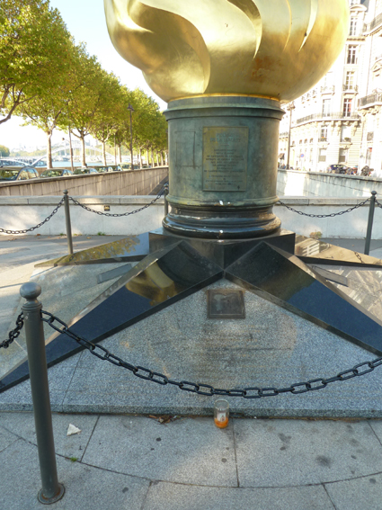 Die Kopie der Flamme, die New Yorks Freiheitsstatue in der Hand hält, ist wieder sauber. Seit dem Unfalltod von Prinzessin Diana und ihres Geliebten Dodi Al-Fayed am 31. August 1997 im Pariser Alma-Tunnel verwandeln sie Fans der britischen Prinzessin in eine Gedenkstätte. Die historische Stelle an der Pont de l'Alma wird jeden Tag von Touristen aus aller Welt besucht und fotografiert. Manche kleben dabei Texte in allen möglichen Sprachen auf den schwarzen Marmor, andere schreiben ihre Gedanken und Wünsche mit Filzstiften auf die Brückenbalustrade. Einen neuen Höhepunkt bildete die dreizehnte Wiederkehr des Jahrestages Ende August 2010, als dort inmitten eines Blumenmeeres sogar Fotografien der Prinzessin und ihres Freundes zu sehen waren.