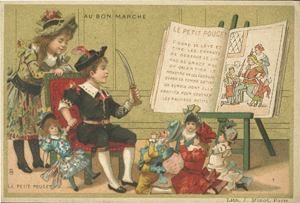 Die Darstellung der historisch gekleideten Kinder gehört zu einer Serie von Sammelbildern, auf denen Szenen aus bekannten französischen Märchen in ganz der gleichen Manier dargestellt wurden.
