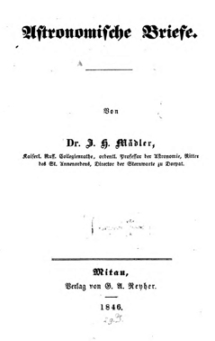 Der Astronom Johann Heinrich Mädler (1794-1874) fertigte detaillierte Karten des Mondes an, die jahrzehntelang das Standardwerk der Mondforschung waren. Außerdem veröffentlichte er im Jahre 1840 eine populäre Geschichte der Mondforschung mit dem Titel "Astronomische Briefe", in der er den damaligen Stand des Wissens über den Erdtrabanten auch für Nicht-Fachleute darstellte.