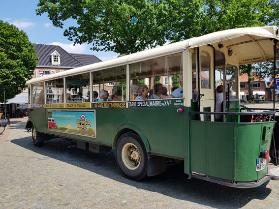 Über den eingesetzten Bus lesen wir auf der Homepage: „Deze bus is in 1935 door frankrijk grootste automobiel fabrikant gebouwd en door de franse nationale spoorwegen in dienst genomen. Sindsdien heeft deze bus op de route Parijs – Rouen in totaal 1.750.000 passagiers vervoert. Tegenwoordig heeft de bus een bar, en een audio installatie met radio met cd functie.