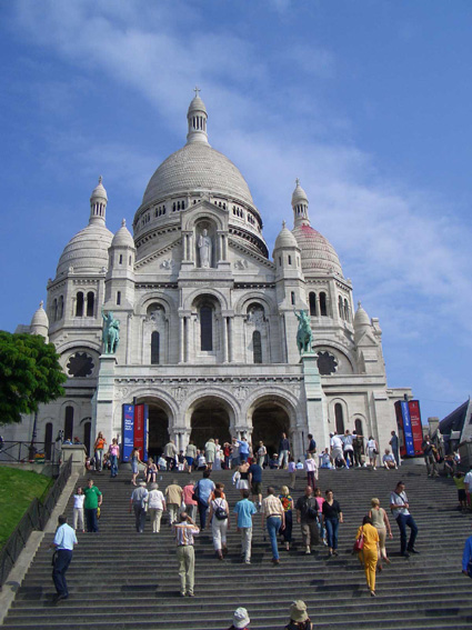 Oben angekommen betreten die Besuchermassen nach einem flüchtigen Rundblick auf das grandiose Stadtpanorama die mächtige Basilika, jenen kitschigen Koloss, in dessen Innerem eine seltsam unechte Frömmigkeit zur Schau gestellt wird, die einen scharfen Kontrast zu den würdigen Kirchen des Mittelalters in der Stadt bildet.