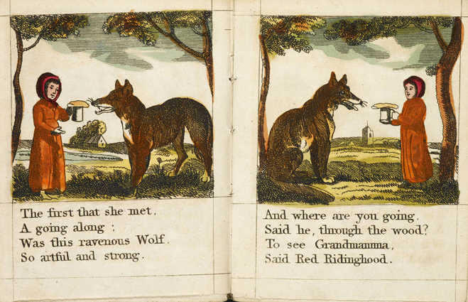 LITTLE RED RIDINGHOOD. Published April 6. 1810, by J. Aldis, N°. 9 Pavement, Moorfields. British Library; (12 kolorierte Kupferstiche).