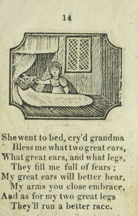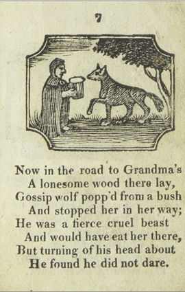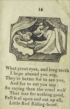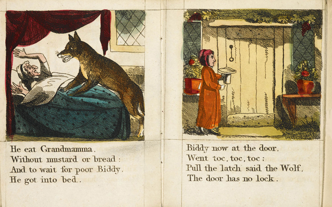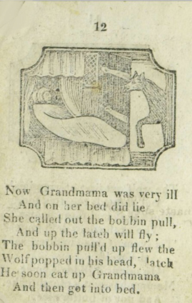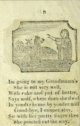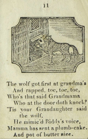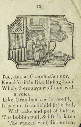 The/ Entertaining Story/ of/ Little/ Red Riding Hood./ To which added,/ Tom Thumb’s Toy./ Adorned with cuts./ York:/ Printed and Sold J. Kendrew, Colliergate. (um 1820)