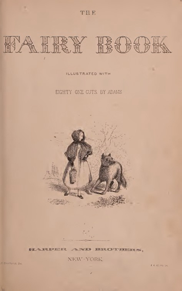 THE/ FAIRY-BOOK./ WITH/ Eighty-one Engravings an Wood,/ BY J. A. ADAMS./ NEW YORK./ HARPER BROTHERS, PUBLISHERS,/ 399 & 331 PEARL STREET/ FRANKLIN SQUARE