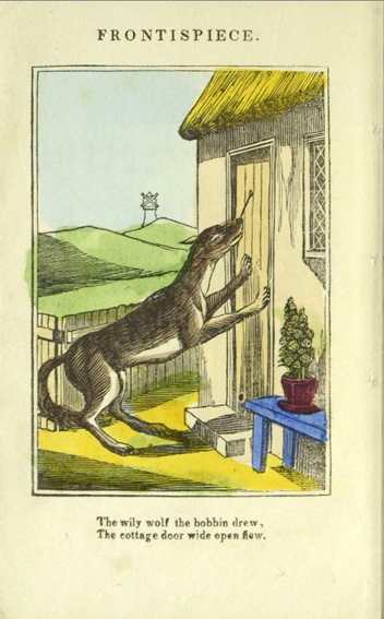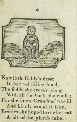 THE HISTOR Y/ OF/ LITTLE RED RIDING-HOOD./ IN VERSE./ ILLUSTRATED BY ENGRAVINGS./ SECOND EDITION./ LONDON:/ PUBLISHED AT THE JUVENILE LIBRARIES OF B. TABART AND CO./ NEW BOND-STREET, AND J. HARRIS, ST. PAUL'S CHURCH-YARD./ Printed by E. Hemsted, Great New-street, Fetterolane./ 1808.
