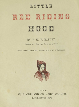 LITTLE/ RED RIDING/ HOOD/BY F. W. BAYLEY,/ Author of "THe New Tale of a Tub."/ With Illustrations, Humorous and Numerous./ London: Wm S. Orr and Co. Amen Corner/ Paternoster Row. (London um 1843)