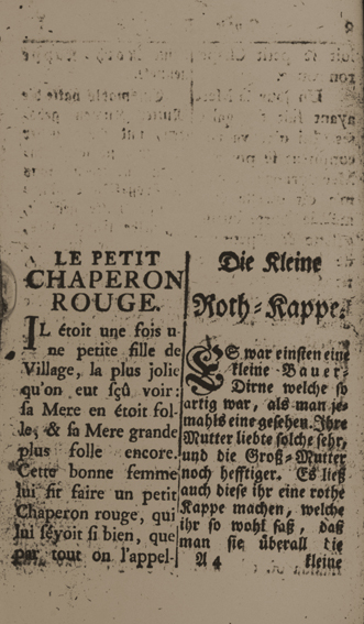 Im Jahre 1822, zehn Jahre nach der Erstveröffentlichung von Grimms Rotkäppchen-Märchen, erschien eine neue zweisprachige Ausgabe von Perraults Feenmärchen.