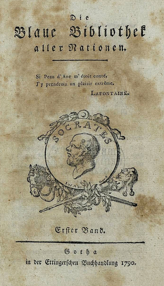 Eine zweite Übersetzung erschien im ersten Band der von Weimarer Verleger Friedrich Justin Bertuch (1747-1822) herausgegebenen Blaue(n) Bibliothek aller Nationen (1790-1800). Beide Übersetzungen halten sich wörtlich an die französische Vorlage; in der Übersetzung von 1790 fehlt die Moralité oder die Sitten-Lehre.