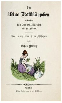 Das/ kleine Rothkäppchen./ Ein Kinder-Märchen/ mit 16 Bildern./ Frei nach dem Französischen/ von/ Gustav Holting./ Berlin./ Winckelmann und Söhne (1840).