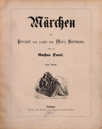 Märchen/ nach/ Perrault, neu erzählt von Moritz Hartmann./ Ill. Von/ Gustav Doré./ Dritte Auflage./ Stuttgart./ Druck und Verlag von Eduard Hallberger. (1872)