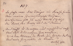Und folgenden Vierzeiler trug er um den Jahreswechsel von 1841/42 in seine Sammelhandschrift „Meine Gedichte“ ein: