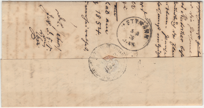 Dieser Faltbrief aus der Anfangszeit des Deutschen Reiches enthält auf Vorder- und Rückseite eigentlich nur die postalische Information, dass er im März 1875 von der evangelischen Kirchengemeinde der Bürgermeisterei Kronenberg An das Königl. Landraths-Amt in Mettmann geschickt wurde.
