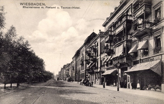 Da der Postbote den Empfänger in Hamburg nicht antraf, strich er 31 Neuestrasse/ Hamburg 5; links vermerkte er ein unterstrichenes: Wenden. Auf der Rückseite notierte er ebenfalls in schwarzer Tinte: Nach zu senden Zur Zeit/ Hotel Taunus in/ Wisbaden mit Blaustift unterstrichen und die Zahl 35 notiert; auf der Vorderseite über der gestrichenen Adresse in Blaustift: Wisbaden (so!). Unter dem Nachsendehinweis die Unterschrift: Name/ Dienstellung/ 31/8 96.