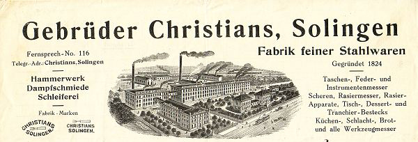 Nach der Jahrhundertwende spezialisierte sich die Firma mehr und mehr auf die Produktion von Scheren, Taschenmessern, Essbestecken und anderen Stahlartikeln wie Rasiermesser und moderne Rasierapparate. Der Vertrieb wurde mit Vertretern und einer offensiven Werbung unterstützt.