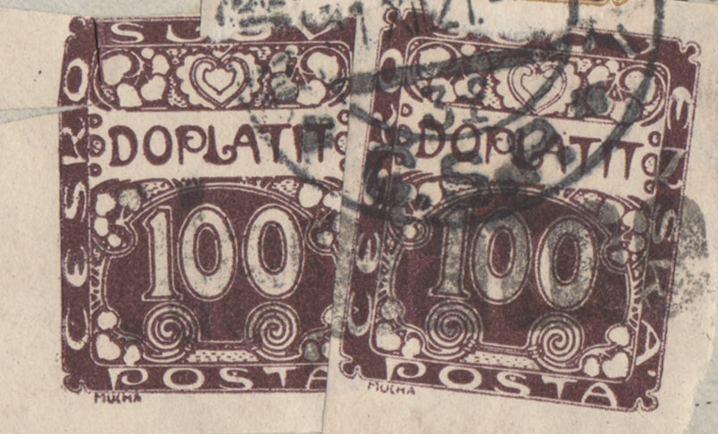 Über die Marken wurde zweimal der Stempel Neplatené abgedrückt, was bedeutet: „ungültig“. Solche Stemple kamen zum Einsatz, wenn eine mit Nachgebühr belastete Sendung vom Empfänger nicht angenommen wurde, weil er nicht bereit war, das Nachporto zu bezahlen.