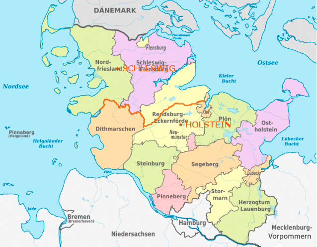 vor 1864 zusammen mit dem Herzogtum Holstein Teil des multi-ethnischen Dänischen