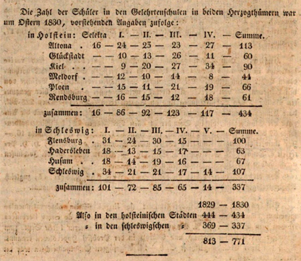Chronik der Universität Kiel und der Gelehrtenschulen in Schleswig und Holstein im Jahr 1830.