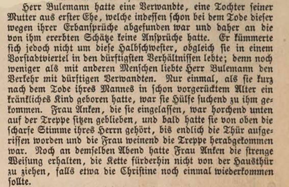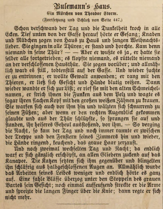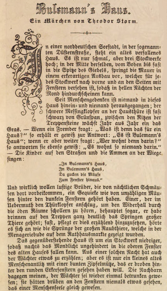 Illustrirte Zeitung. Wöchentliche Nachrichten über die Ereignisse, Zustände und Persönlichkeiten der Gegenwart, über Tagesgeschichte, öffentliches und gesellschaftliches Leben, Wissenschaft und Kunst, Musik, Theater und Mode. 43. Band, Leipzig 1864, No. 1121 vom 24. December 1864, S. 447, 450 und 454. Mit einem Holzstich „Bulemanns Haus. Originalzeichnung von Theodor Hosemann.“ auf 453. |